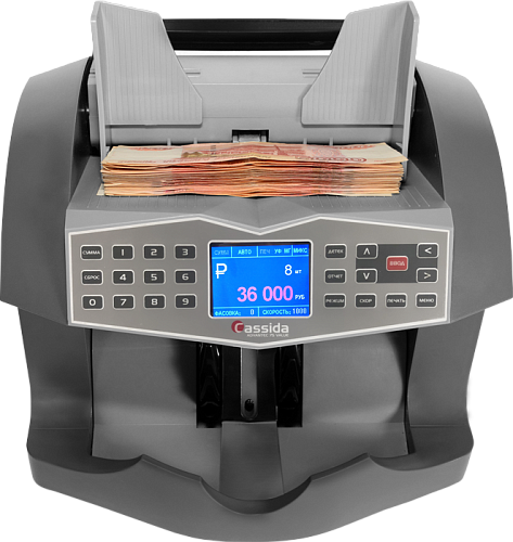 Профессиональный счетчик банкнот Cassida Advantec 75 Value с функциями детектора, которые проводит контроль подлинности следующими методами: